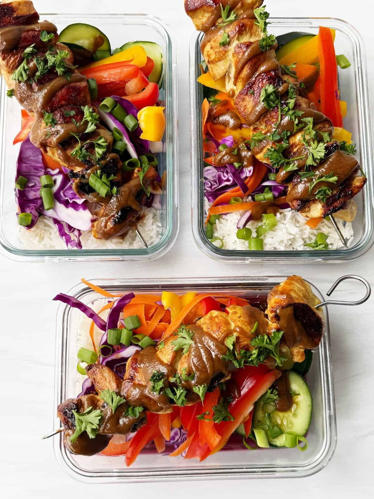 A flavorful lunch is hands down one of my favorite pleasures in life because it really helps you get through the day. If I have a yummy meal prep sitting my fridge or freezer, I am excited once meal time rolls around. These Chicken Satay Skewer meal preps will make you feel that way! If you are looking for more (not boring) gluten-free chicken recipes, I have tons!