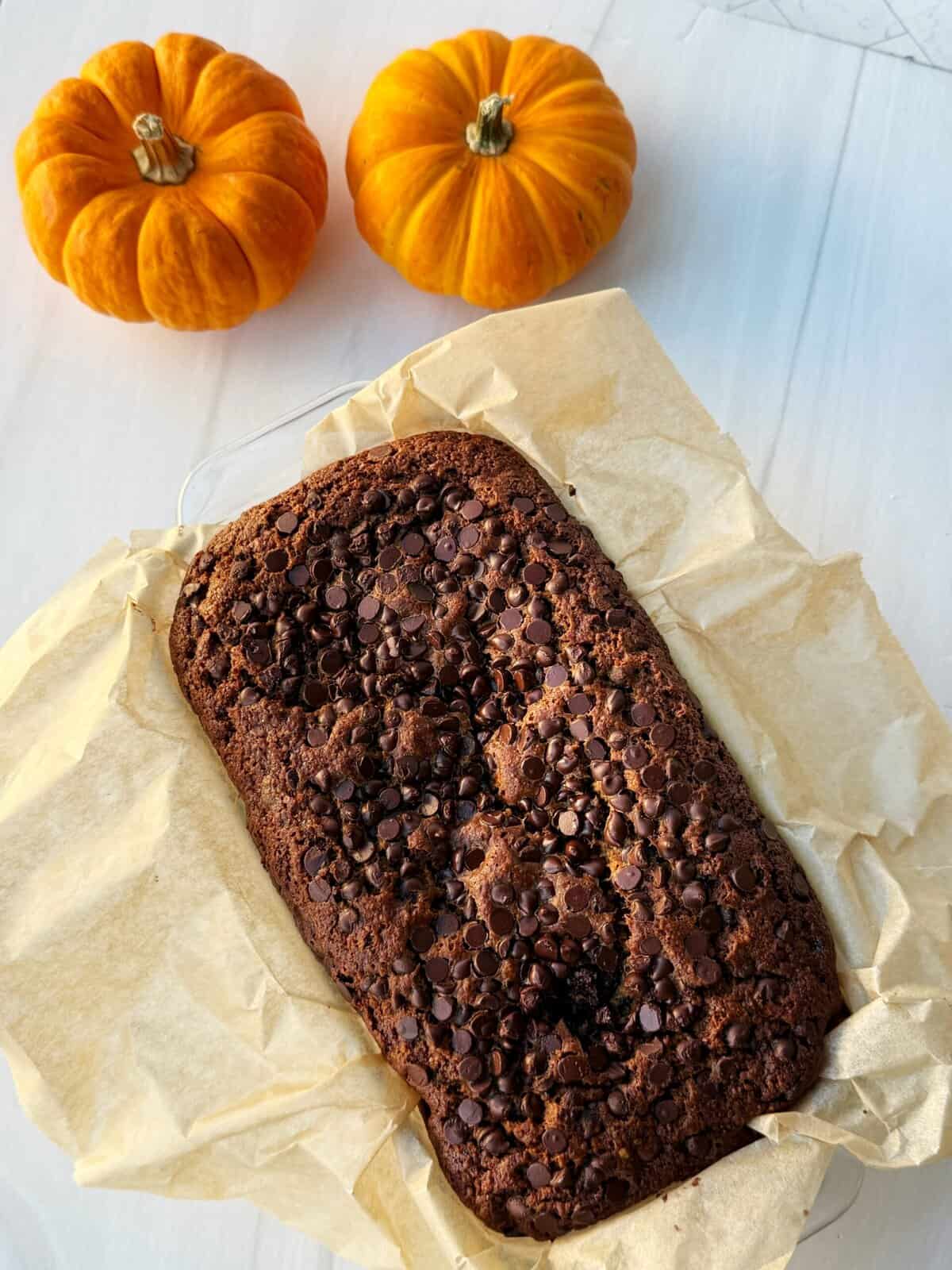 Whether you're baking it for Thanksgiving, a fun fall weekend or just because you want something delicious and comforting, this is the sweet treat your whole family will want to devour! If you're looking for more pumpkin recipes, check out my Gluten Free Pumpkin Oatmeal Cookies, these Pumpkin Banana Chocolate Chip Cookies or my Vegan Pumpkin Pie Spice Chai Latte.