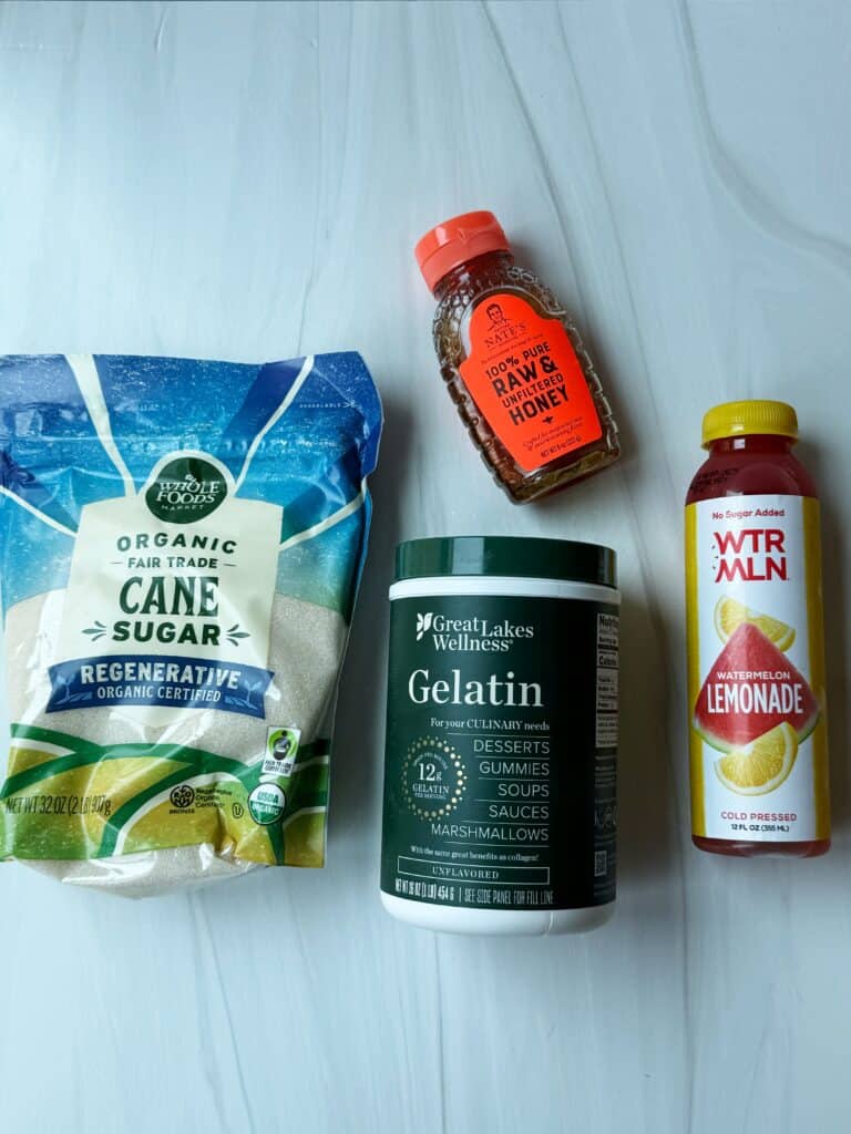 These gummies are made with watermelon lemonade, gelatin and honey.
