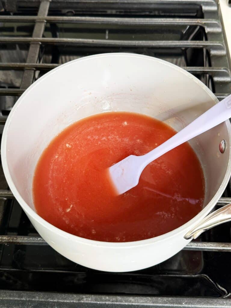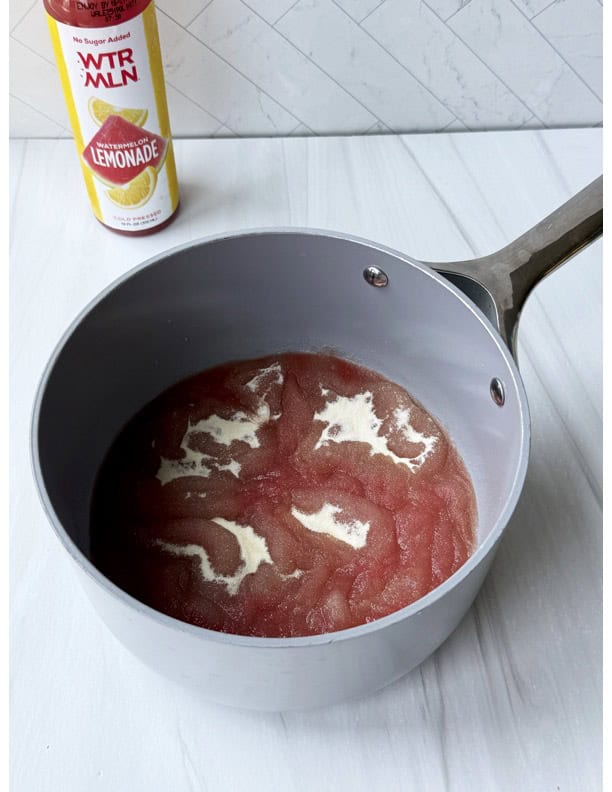 - Add watermelon lemonade and gelatin to a pot and let sit for 5 minutes.